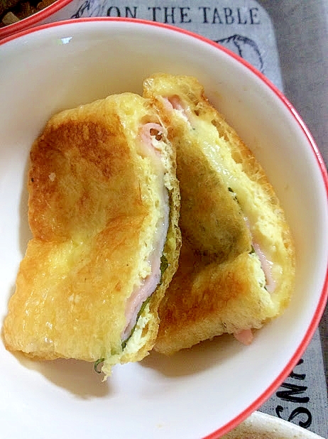 ハムチーズ大葉の油揚げ挟み焼き 簡単お弁当レシピ レシピ 作り方 By あさこんぶ 楽天レシピ